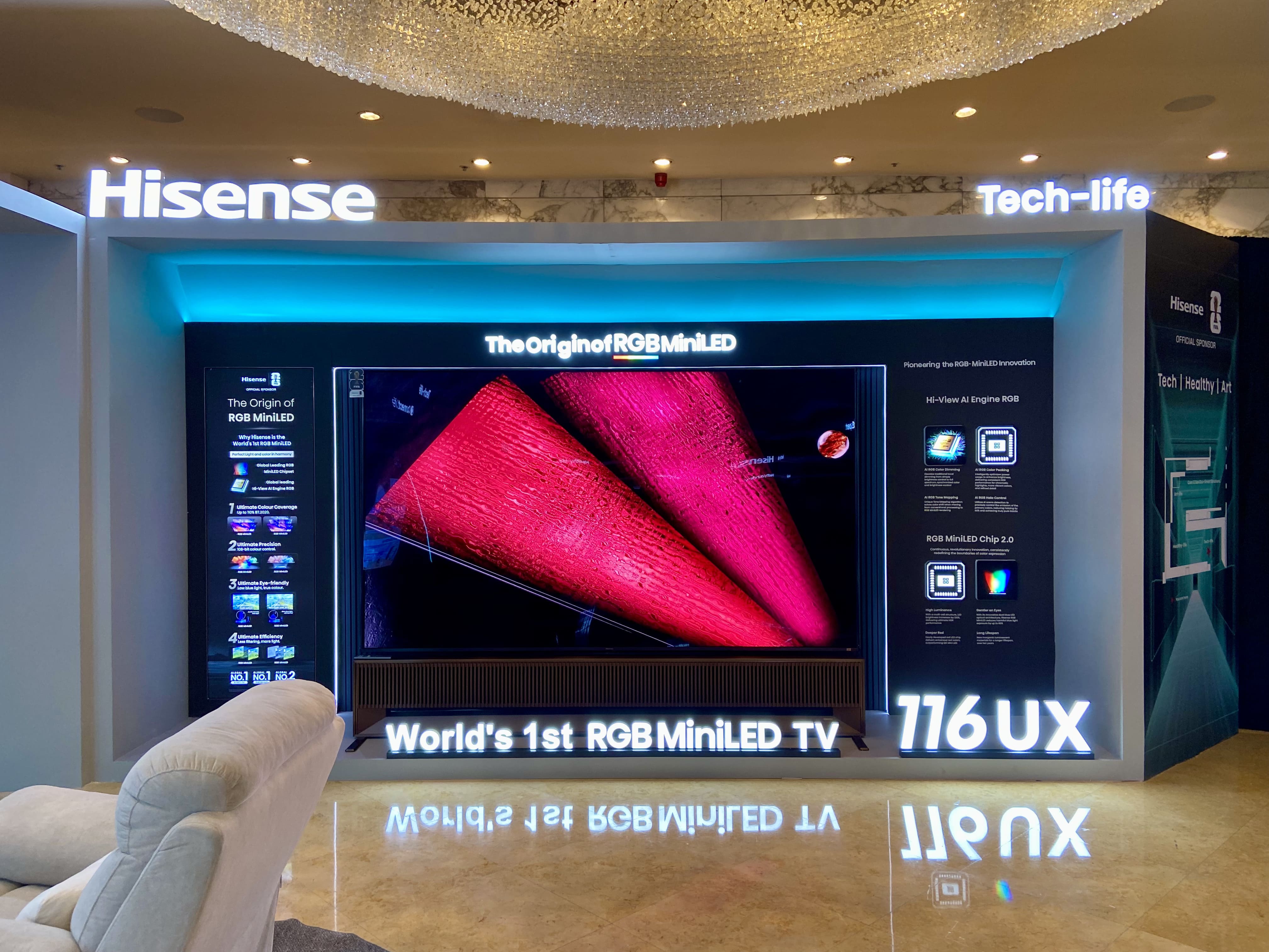At the top of the display lineup sits the 116-inch UXQ, the world's first RGB MiniLED TV. If you think that this is merely an incremental update on existing MiniLED technology, think again, because it's a fundamentally different approach.